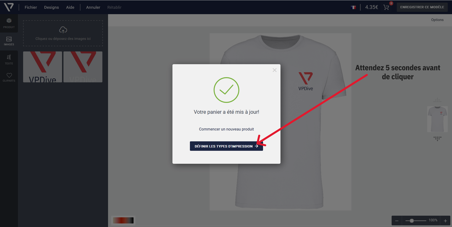 ⚠️ A cause d'un bug de serveur, attendez 5 petites secondes avant de cliquer sur "Définir les types d'impression"